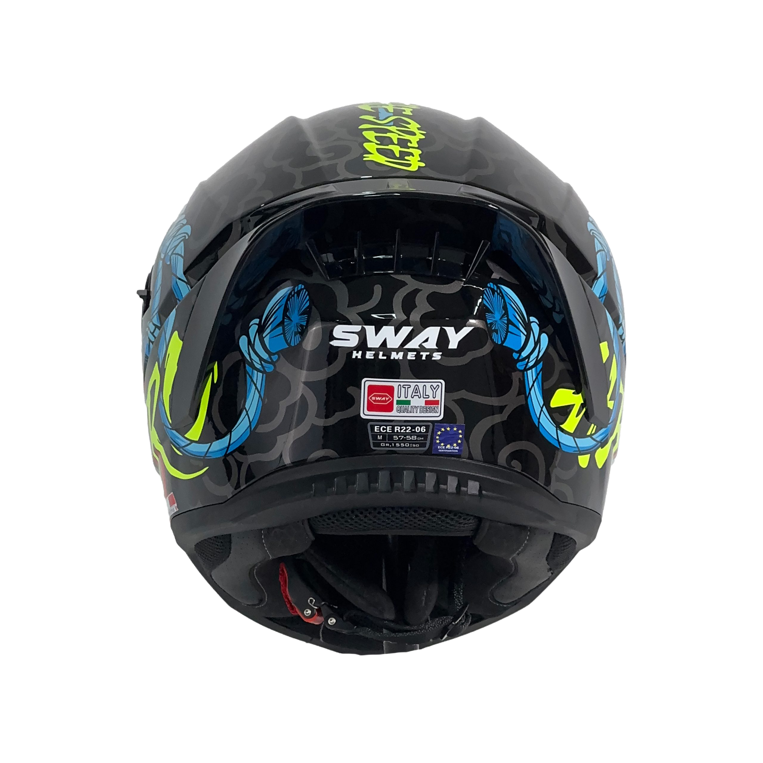 **GÜVENLİK**: SWAY SW 869 HERO, ECE 22.06 sertifikası ile yüksek güvenlik standartlarını karşılar. Kabuk malzemesi, yüksek darbe dayanıklılığı sunan enjeksiyon termoplastik (HIPS) kullanılarak üretilmiştir. Mikrometrik bağlantı sistemi sayesinde güvenli bir oturuş sağlar. 2.2 mm kalınlığındaki çizilmeye dayanıklı polikarbonat vizör, net bir görüş açısı sunarak sürüş sırasında güvenliğinizi artırır. Kaskın tasarımında kullanılan grafik seçenekleri, şıklığı ve görünürlüğü bir arada sunar.